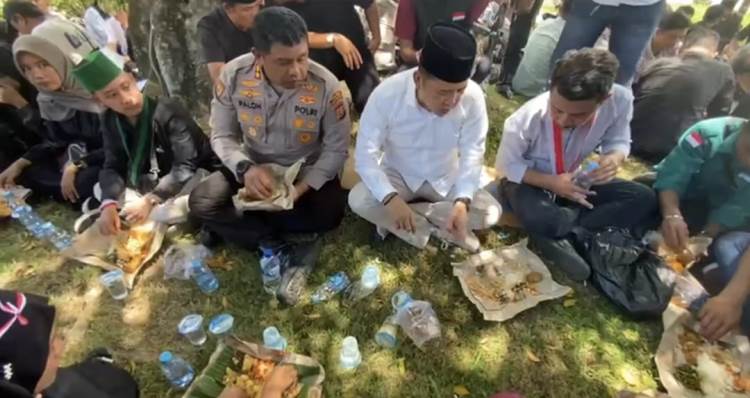 Ketua DPRD Madina Berbaur dan Makan Nasi Bungkus Bersama Ratusan Mahasiswa Cipayung Plus.