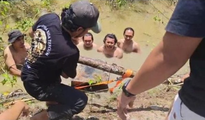 Bangkai mesin ATM yang sudah kosong kemudian dibuang di rawa-rawa di wilayah Kecamatan Parangloe, Kabupaten Gowa, Sulawesi Selatan.