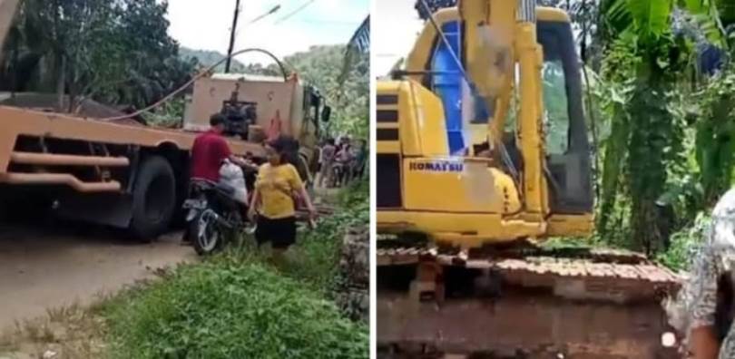 “Gara-gara mobil pembawa alat berat memaksa lewat, jembatan pun rusak,” ujarnya.