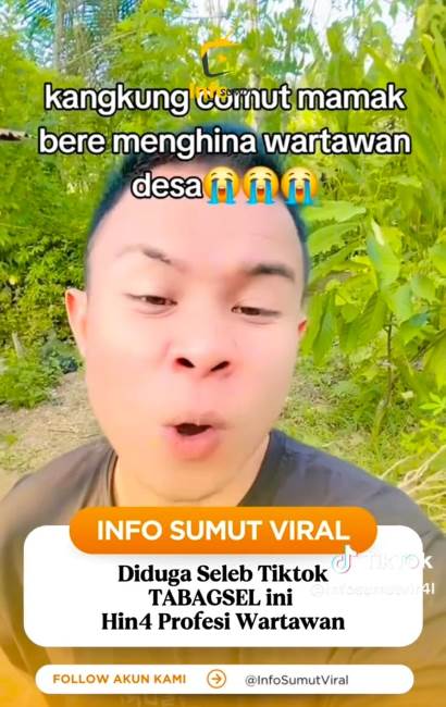 Dalam tayangan tersebut, sang konten kreator berbicara dengan gaya berlebihan sambil menyebut kalimat yang dianggap menghina profesi jurnalis. Tulisan yang muncul di video berbunyi “Kangkung comnut mamak bere menghina wartawan desa”, memperkuat dugaan bahwa konten tersebut bernada ejekan terhadap wartawan.