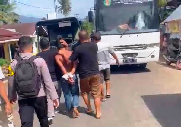 Pelaku begal payudara saat dibawa warga ke Polres Padangsidimpuan.