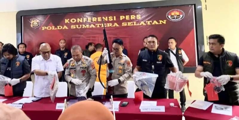 Dalam konferensi pers di Gedung Presisi Polda Sumsel, Rabu (29/10/2025), Kasubdit III Jatanras Polda Sumsel AKBP Tri Wahyudi, SH menyampaikan, polisi turut mengamankan sejumlah barang bukti antara lain satu pucuk senapan angin gejluk, 85 butir amunisi, sepeda motor Honda Beat warna putih, karung plastik, sandal, pakaian korban, dan senter.